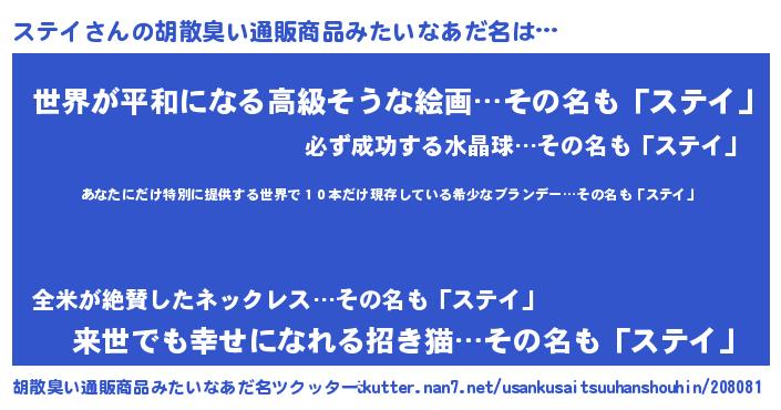 | 意味不明あだ名 | 『住所不定無職ステイ(71歳)』 |