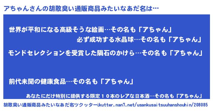 アちゃんさんの胡散臭い通販商品みたいなあだ名をツクッター!