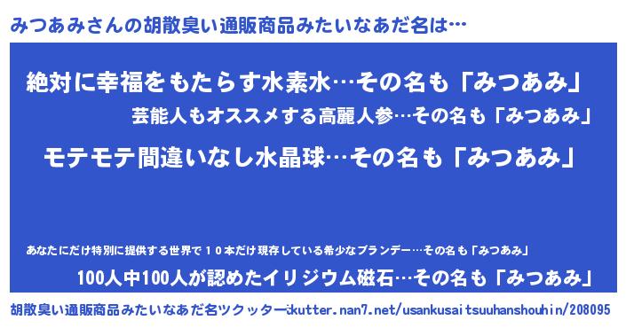 | 意味不明あだ名 | 『ペロリンみつあみ』『永久保存みつあみ』 |