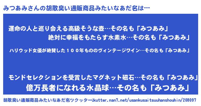| 恥ずかしいあだ名 | 『みつっちょ』『プリティーみつあみ』 |