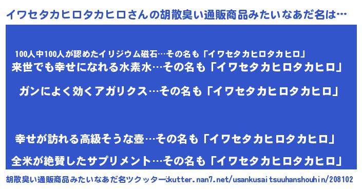 | 意味不明あだ名 | 『自称イワセタカヒロタカヒロ』 |