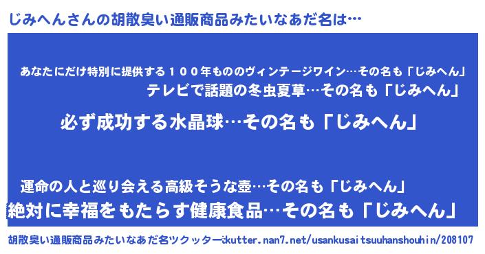 | ヘコむあだ名 | 『じみにゅー』『じみへん(笑)』 |