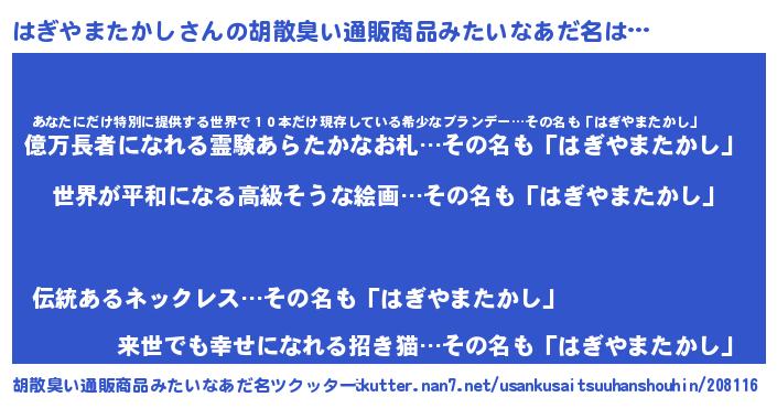 | 欧米人風あだ名 | 『はぎやまたかしクリステル』 |