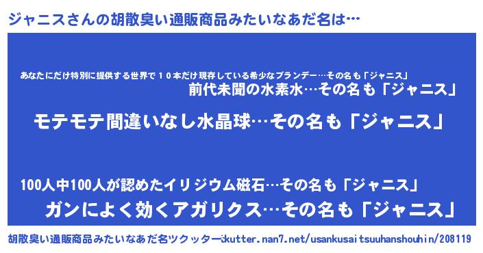 | 意味不明あだ名 | 『ペロリンジャニス』『自称ジャニス』 |