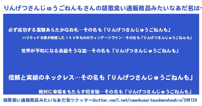 | 男性向けラノベタイトル風あだ名 | 『やはりりんげつさんじゅうごねんもの青春ラブコメはまちがっている 』 |