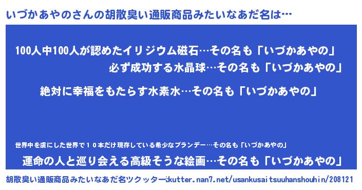 | 男性向けラノベタイトル風あだ名 | 『いづかあやのという概念が存在しない退屈な世界 』 |