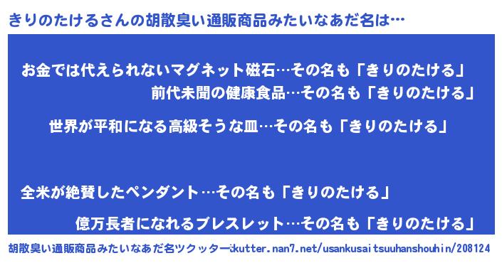 | 意味不明あだ名 | 『きりのたけるフォーエバー』 |