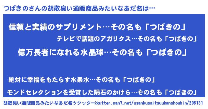 | 欧米人風あだ名 | 『マイケルつばきの』『ウサインつばきの』 |