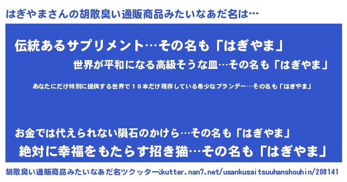 | 意味不明あだ名 | 『住所不定無職はぎやま(95歳)』 |