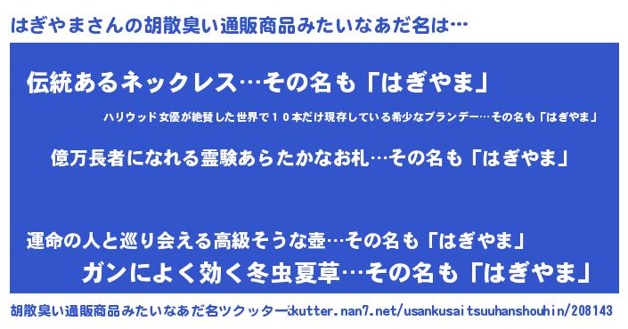 | 欧米人風あだ名 | 『マイケルはぎやま』『ウサインはぎやま』 |