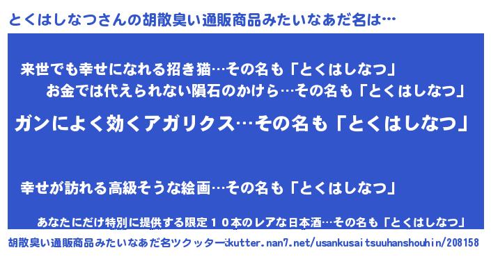| ヘコむあだ名 | 『とくはしなつ(笑)』『なまこ酢』 |