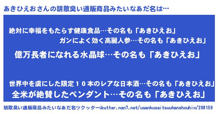| 意味不明あだ名 | 『ペロリンあきひえお』『自称あきひえお』 |