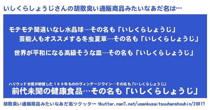 | 男性向けラノベタイトル風あだ名 | 『転生したらいしくらしょうじだった件』 |