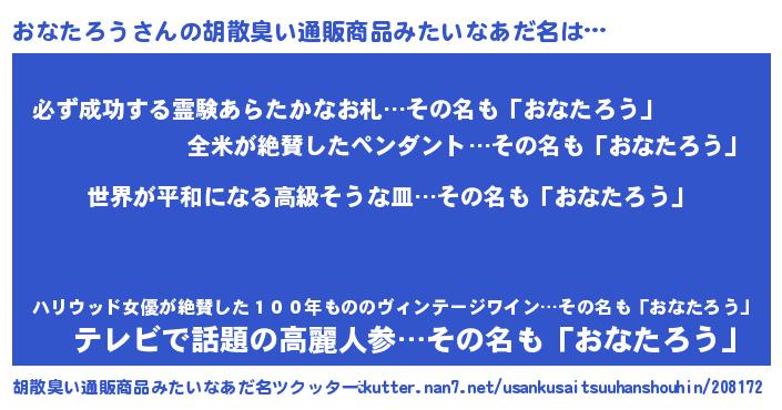 | ファンタジー風あだ名 | 『エターナルオナタロウー』『オナフェル』 |