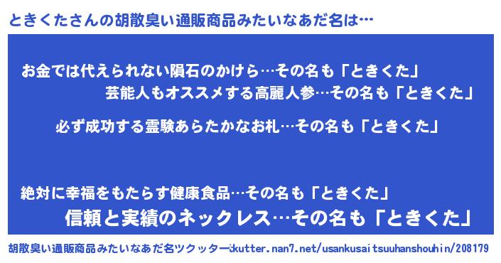 | 意味不明あだ名 | 『ペロリンときくた』『自称ときくた』 |