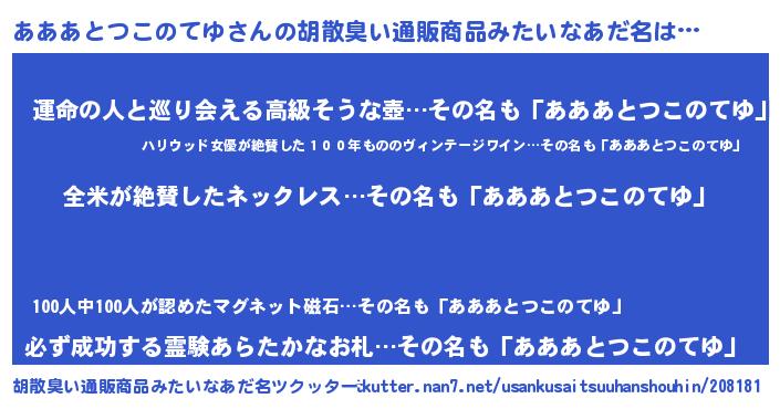 | 意味不明あだ名 | 『とにかく怪しいあああとつこのてゆ』 |