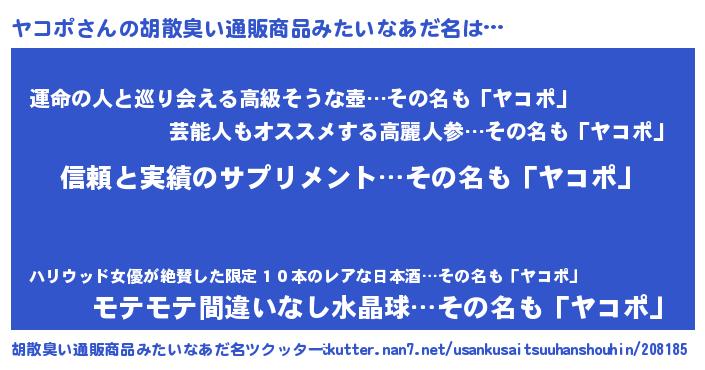 | 意味不明あだ名 | 『とにかく怪しいヤコポ』『自称ヤコポ』 |
