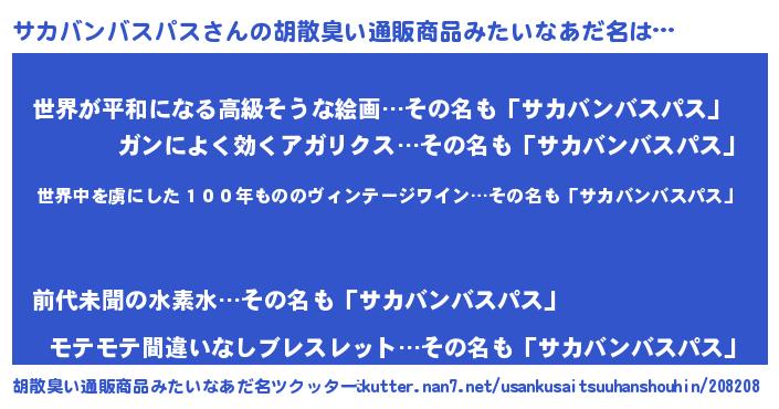 | 欧米人風あだ名 | 『ダレノガレサカバンバスパス』 |