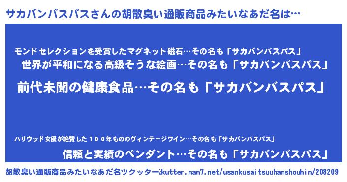 | 伝説のあだ名 | 『古文書に記された暗殺者サカバンバスパス』 |