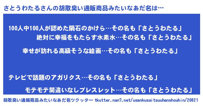 | 意味不明あだ名 | 『さとうわたるフォーエバー』 |
