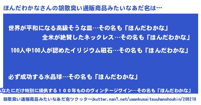 | 欧米人風あだ名 | 『ダニエルほんだわかな』 |