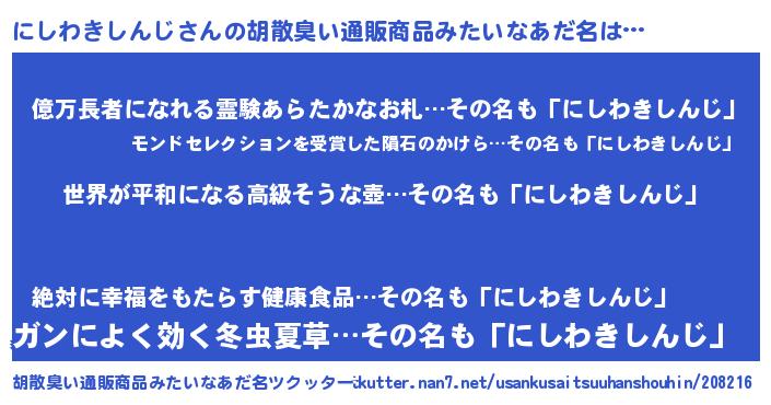 | 意味不明あだ名 | 『にしわきしんじフォーエバー』 |