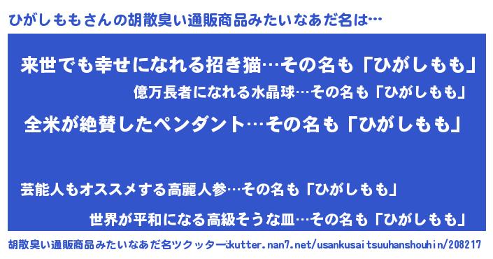 | ヘコむあだ名 | 『ひがぷりん』『ひがしもも(小並感)』 |