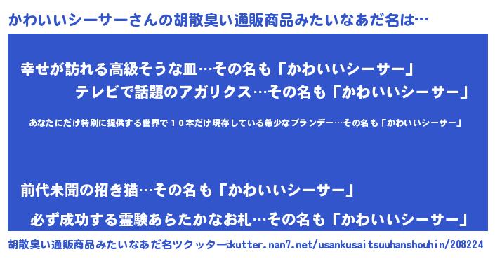 | 意味不明あだ名 | 『住所不定無職かわいいシーサー(79歳)』 |