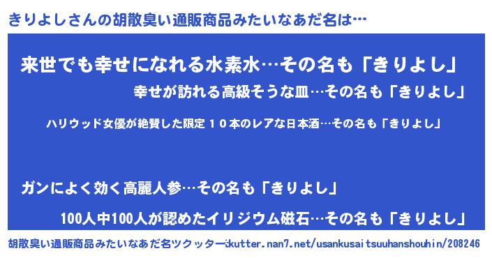 | ヘコむあだ名 | 『きりよし(笑)』『なまこ酢』 |