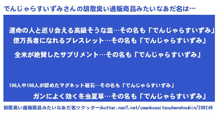 | 意味不明あだ名 | 『つくし科でんじゃらすいずみ属』 |