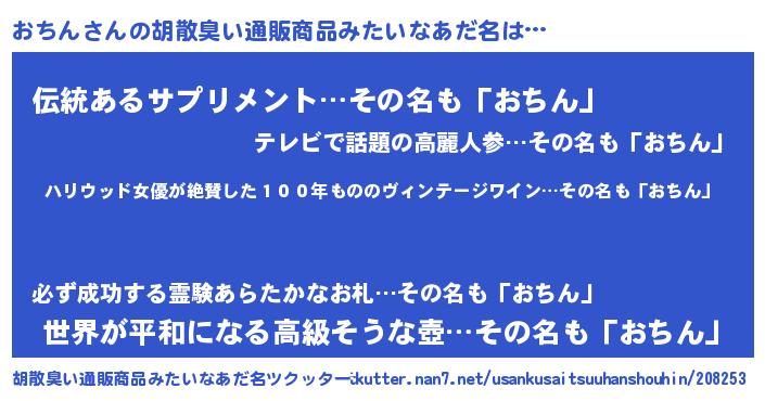 | 男性向けラノベタイトル風あだ名 | 『魔弾の王とおちん』 |
