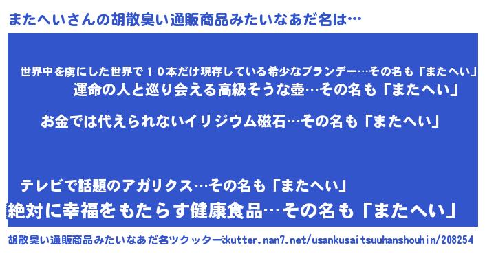 | ヘコむあだ名 | 『またへい(苦笑)』『牛乳』 |