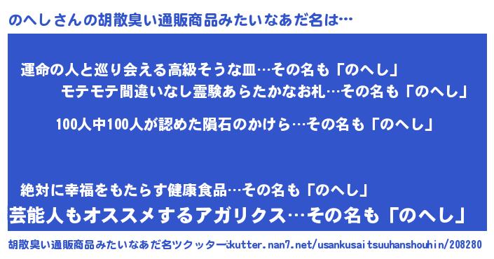 | 意味不明あだ名 | 『めかぶ科のへし属』『自称のへし』 |