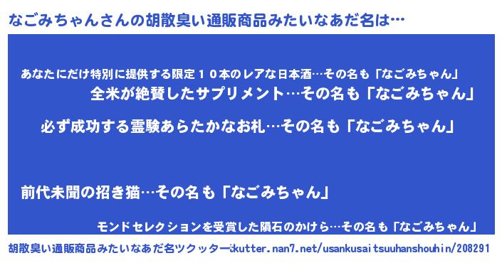 | ヘコむあだ名 | 『なごっふぃ~』『なご太郎』 |
