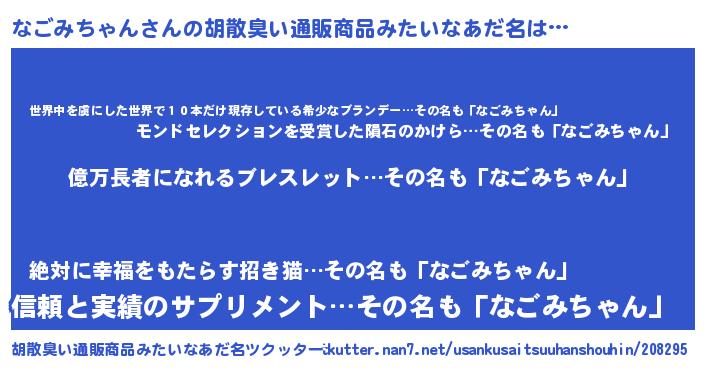 | 男性向けラノベタイトル風あだ名 | 『ナゴミチャンアートオンライン』 |