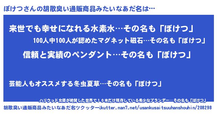 | ヘコむあだ名 | 『ぼけっちょ』『ぼけつ(笑)』 |