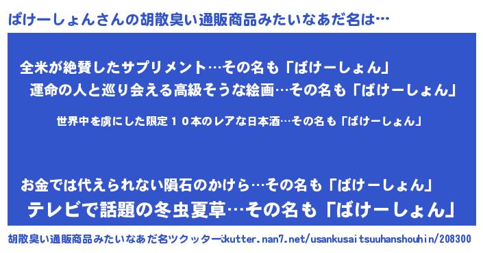 | 意味不明あだ名 | 『住所不定無職ばけーしょん(68歳)』 |