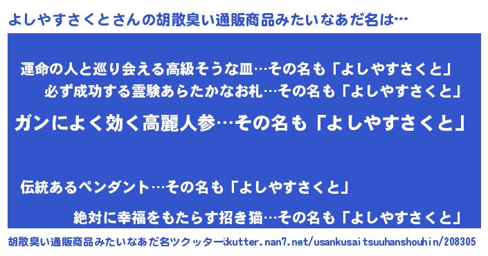 | 意味不明あだ名 | 『自称よしやすさくと』 |