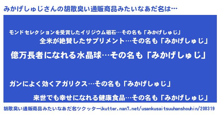| ヘコむあだ名 | 『みかにゅー』『みかげしゅじ(苦笑)』 |