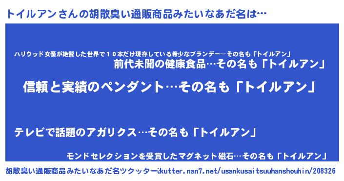 | ヘコむあだ名 | 『トイぷりん』『トイルアン(笑)』 |