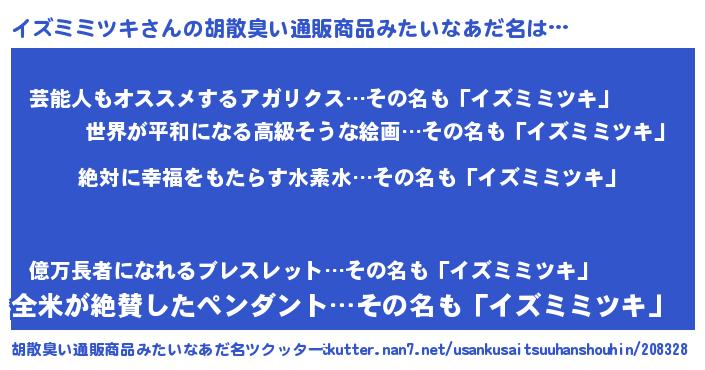 | ヘコむあだ名 | 『イズミミツキ(苦笑)』『イズっちょ』 |