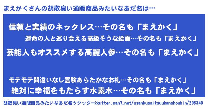 | 意味不明あだ名 | 『自称まえかく』『永久保存まえかく』 |