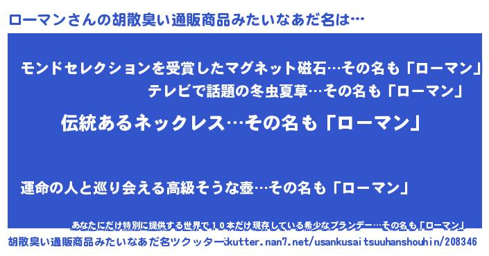 | 意味不明あだ名 | 『とにかく怪しいローマン』 |