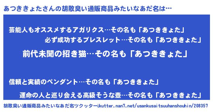 | 意味不明あだ名 | 『永久保存あつききょた』 |