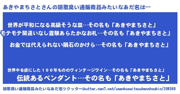 | ヘコむあだ名 | 『豆乳』『あきっぺ』『あきっふぃ~』 |