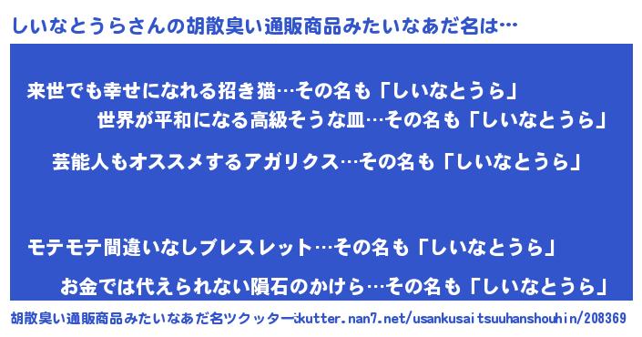 | ヘコむあだ名 | 『しいなとうら(苦笑)』『豆乳』 |