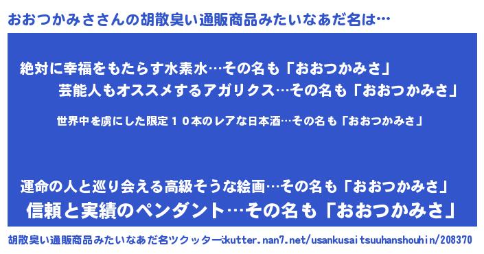 | ヘコむあだ名 | 『おおつかみさ(爆)』『おおぷりん』 |