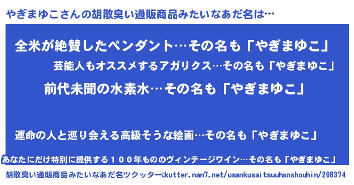 | 可愛いあだ名 | 『やぎぷりん』『やぎまゆこママ』 |
