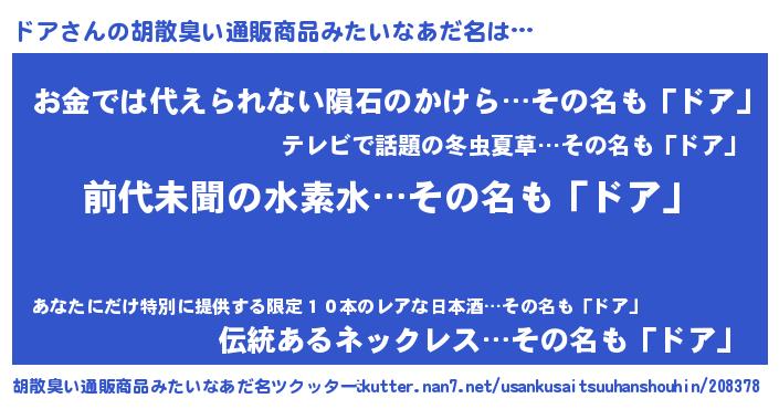 | ヘコむあだ名 | 『ドア(震え声)』『ドアっちょ』 |