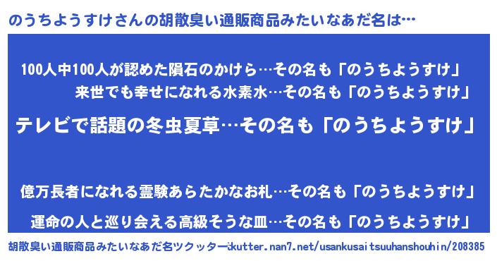 | 女子向けラノベタイトル風あだ名 | 『のうちようすけアンティーク』 |